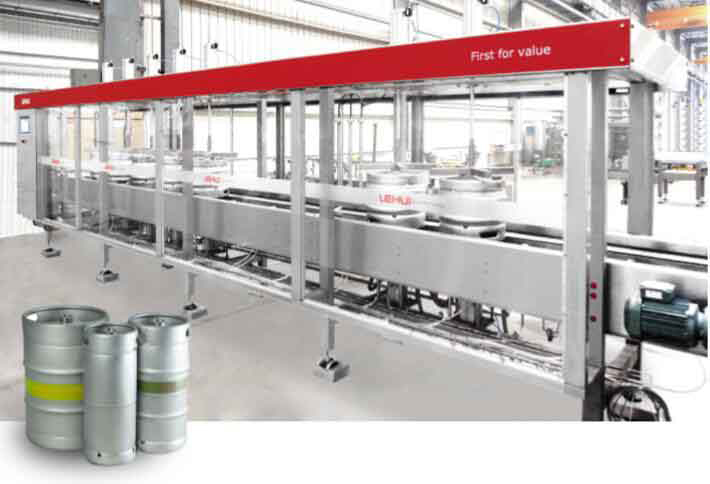 型碱回收设计,节约能源。啤酒桶压力密封性能可检 测,完全符合欧盟安全和环保标准。高精度流量计精确控制灌装量,降 低酒损。灌装过程采用啤酒背压和流